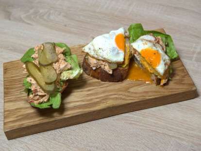 Отличный выбор для любителей бутербродов на завтрак, желающих разнообразия. Ингреденты ржаные тосты с семечками – 2 шт.яйцо – 1 шт.салат латук – 1 листотварная куриная грудка – 50 гр.сливочный маложирный сыр – 30 гр.кетчуп – 10 гр.горчица зернистая – 10…